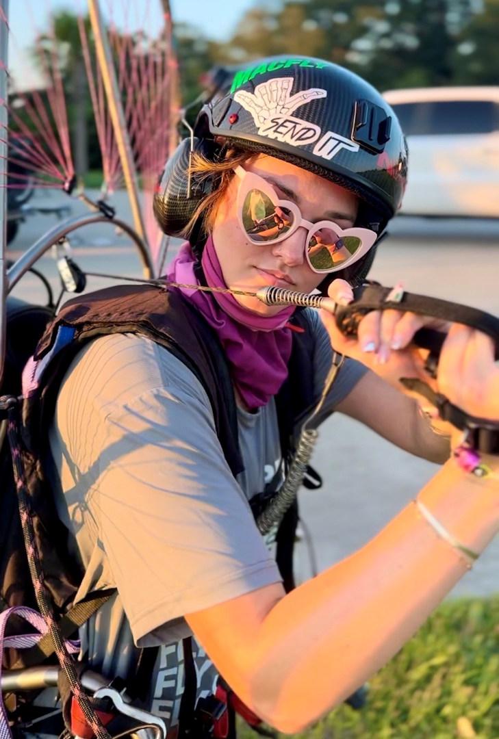 ... Mon premier vol solo était magique. Je l’ai réalisé au coucher du soleil, seule sur le terrain, avec papa à la radio ..